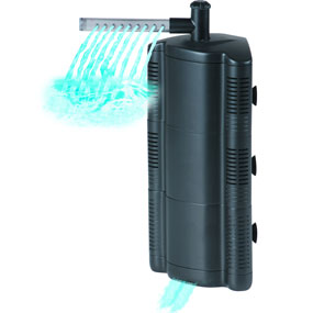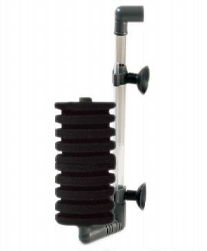 A levegővel működő belső szűrők nagyszerű működésűek. A vízbe benyomott levegő felemelkedve vizet szállít magával. Ha ez a víz valamilyen szűrőközegen megy keresztül, a szennyeződés a szűrőanyagban marad. A szűrő anyaga leggyakrabban szivacs. Ha a szivacs telítődik, langyos vízzel mossuk át. Sose használjunk vegyszert! Vegyes akváriumhoz 50-60L-ig vagy tenyésztő akváriumhoz javasolt.