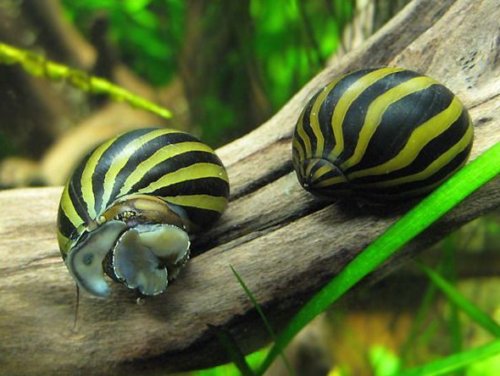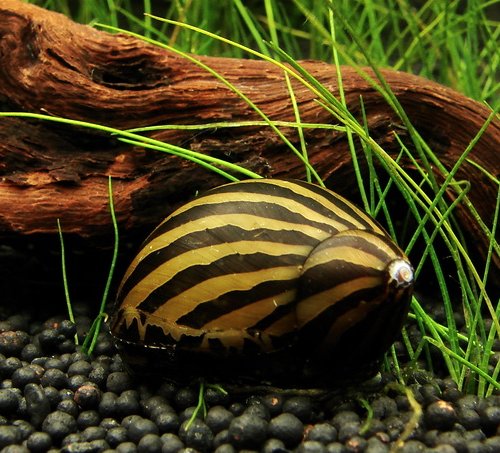A Zebracsiga az egyik legszebb az édesvízi akváriumi csigák közül. Háza aranyszínű, amin fekete cikk-cakkos mintázat fut a ház csúcsától az aljáig. A csiga teste szürke, amin fekete csíkok futnak.