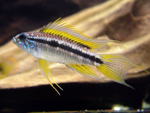 Külön kis akváriumban tenyészthető. Egy hímre 2-3 nőstényt is számoljunk. Szaporodáshoz csökkentsük a víz keménységét 1-4 NK° körülire, a pH-t 6-6,5-re és a vízhőmérsékletet emeljük meg 28-30 °C-ra. Az ikrák száma elérheti a 100-at is, amit egy barlang mennyezetére ragasztanak. A nagyszámú ikrát és az ivadékokat a nőstény ápolja. Revírvédő, a nőstények agresszíven védik az ikrázó területük határát, sőt a nőstények ellophatják más nőstények ivadékait is.