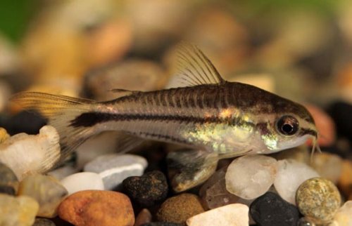Teste sárgásszürke, nagy, sötét szemgyűrűvel, a faroktőn sötét folttal. Úszóhólyagjuk, ellentétben a többi Corydoras fajjal, alkalmassá teszi őket a lebegő úszásra.
