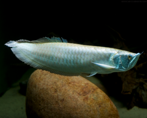 Az Ezüst arowana teste hosszú, oldalról lapított, a hát egyenes. Testét hatalmas pikkelyek borítják, fejét pedig csontos lemezek. A farok alatti úszó hosszú, a test közepétől indul és egészen a farokúszóig ér, a mellúszó karcsú. Ezeknek az úszóknak a színe ezüstös, de idősebb korban besötétedhet. Szájuk jellegzetes, felső állású és hatalmasra tudják nyitni. Két szál bajszuk az állkapocs alsó részén található, melynek színe lehet fekete, kék, zöld, piros. Testük színe függ a nemüktől, a koruktól és a származási helyüktől, de általában fehér színű, ezüstös csillogással. Egyes egyedeknél a test rózsaszínes árnyalatú. A fiatal halakon két fekete folt található, egyik a kopoltyúfedő előtt, a másik pedig mögötte, amelyek idővel eltűnnek. Szemeik nagyok és sötét színűek. Képesek a felszíni levegőt is belélegezni.