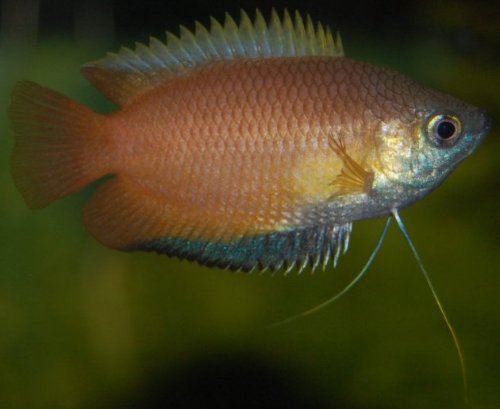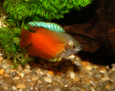 Amikor a gurámik megérkeznek az akváriumba, rendszerint fakó a színük, részben azért, mert még fiatalok, részben, mert stressz érte őket. A hímek rövid időn belül csodaszép narancs- és fekete színekbe öltöznek. A nőstények, oldalukon egy vízszintes sötét csíkkal, megőrzik világos színűket.
