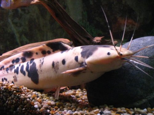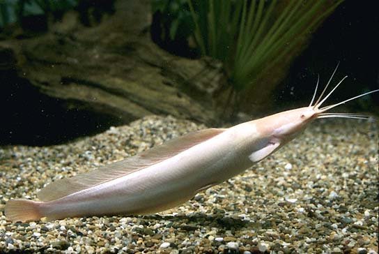 Az akvarisztikában az albínó és a márványos színezet dominál. A hátúszójuk és a farok alatti úszójuk hosszú, mindkettő a farokúszó tövéig ér. A farokúszó kicsi, lekerekített. Fején 4 pár bajuszpár található.