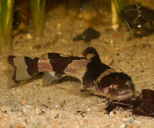 Békés, éjszakai harcsa, társas akváriumba való, de ami befér a száján azt megeszi, ezért a nagyon apró halivadékokat éjszaka levadássza.